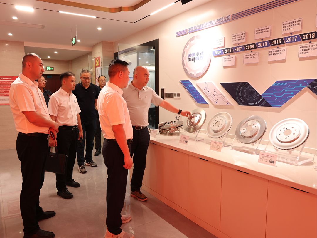 5月7日下午,風雨交加,但并沒有阻礙交流團一行的學習之旅。在湖南湘投輕材科技股份有限公司展示廳,該公司黨總支部書記、董事長蔣兆汝介紹了公司自主研發的鋁基制動盤,通過實物的一一對比,展示工藝的突飛猛進,以及產品更強、更輕、更環保的特性。在接下來的座談會上,雙方就前期正在洽談的合作項目展開了深入細致的溝通,就合作模式進行了探討和分析,希望通過雙方的共同努力,發揮各自公司的優勢特長,做好全產業鏈條的合作。